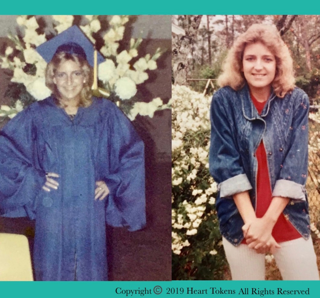 White tennis shoes all the cheerleaders were wearing, complete with friendship pins and neon colored-shoestrings, were very popular at my school at the time. We didn’t have much money, and the added expense of mounting medical bills with my Mom’s cancer treatments, left me GRATEFUL to even be able to receive a knock-off pair in pink and also in turquoise blue.