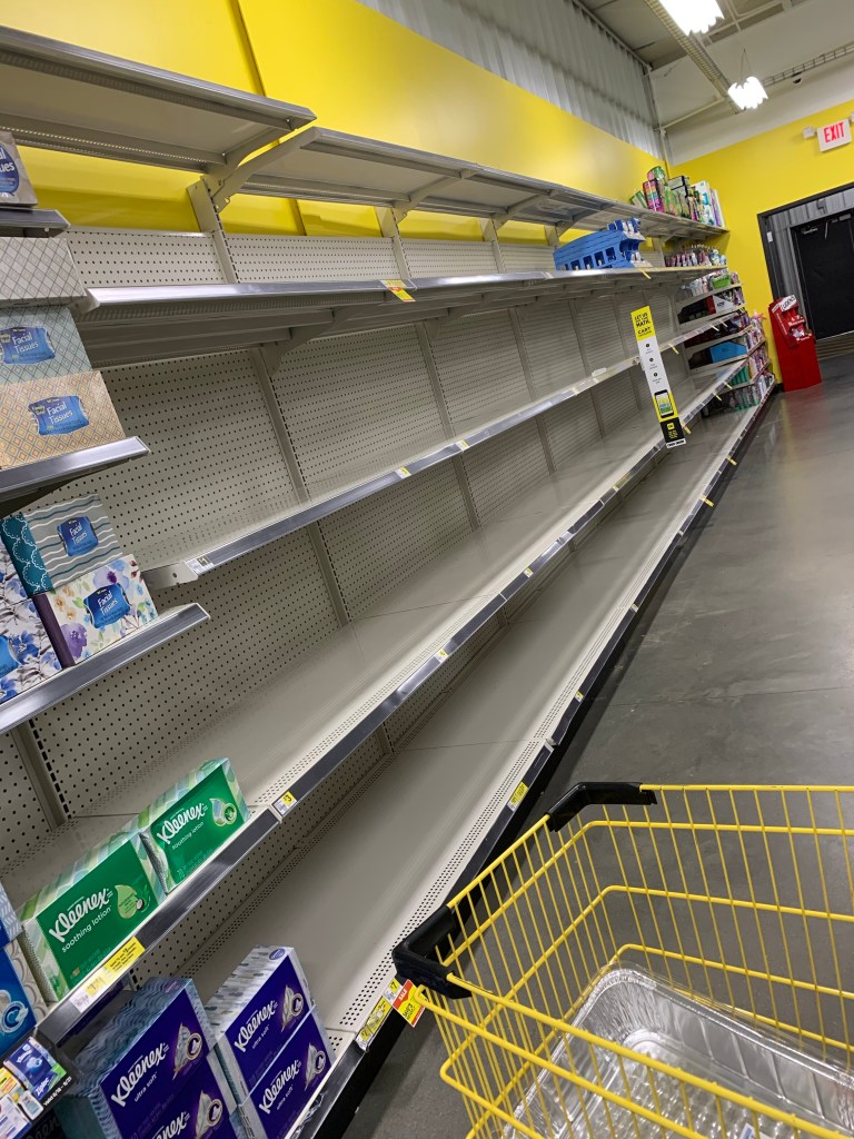 A random man and his son came up to me and we were looking at the empty shelves together, where the toilet paper should have been. I told him I wasn’t trying to horde up any, but was running low. He went around the corner and then came back with 3 cheap packs in his hands. He had gotten some, as well….The last packs in the store….Coincidence? I think not.