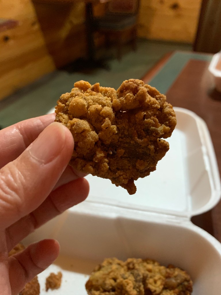 A fried oyster from my dinner last night. 😲 A heart…💜